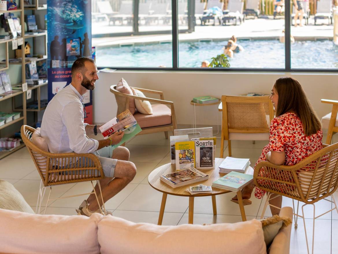 La réception du village met tout en œuvre pour vous proposer des services de qualité : renseignements touristiques, coupons de réduction, service de baby-sitting ou encore visites guidées au départ du camping, tout y est ! Côté commerce, vous trouverez un coin épicerie dans la réception avec tous les produits de première nécessité.
